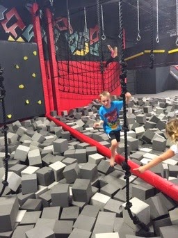 Later that week we went to a new trampoline place near our house called Krazy Air. We have been to trampoline places many times but this new place is right by our house (YAY for mom), it has a lot of climbing walls, slides, rope swings, a basketball hoop, dodge ball, and some soft stacking blocks. The kids had a blast. They were so sweaty by the end, it was awesome. Sarah even busted out some of her old back flip skills. Christian spent nearly the entire time on the climbing slide and in the block pit. This will definitely be our new hangout spot this summer.